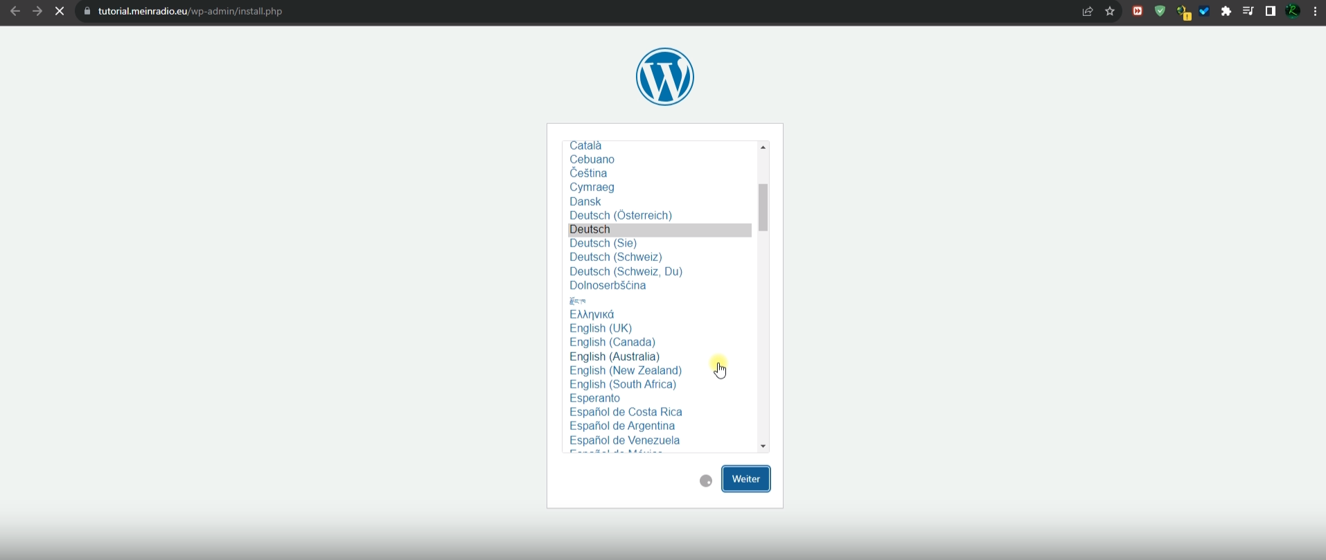 Dabei setzen wir einen Webseiten Titel (Später auch wieder änderbar) und den Nutzernamen und das jeweilige Passwort für den WordPress Nutzer. Im Anschluss ist die WordPress Instanz einsatzbreit.